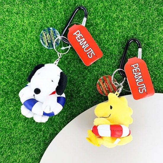 夏はやっぱボーダーで決まり♪スヌーピー&ウッドストックのサマーマスコットは涼し気なアクリルチャーム付きで浮き輪。 | NEWSCAST