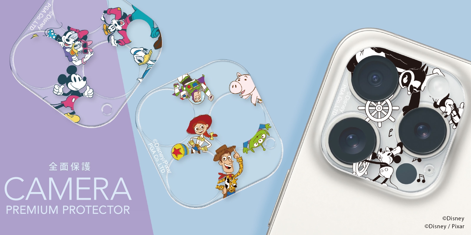ディズニーキャラクターデザインのiPhone15ProやiPhone15ProMAXのカメラレンズを保護するカメラレンズプロテクターを株式会社PGAが4月19日から新発売