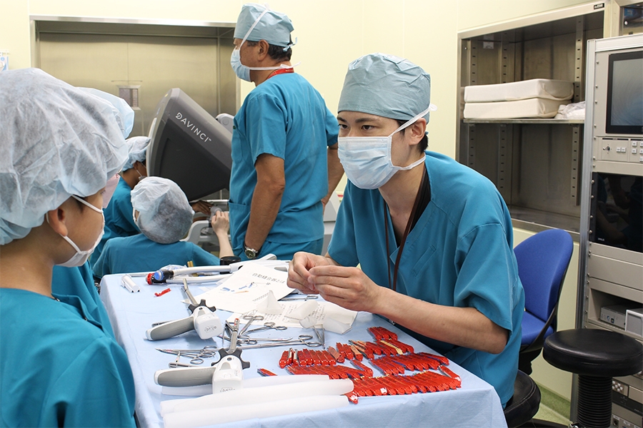 当院は、埼玉県県央医療圏(上尾市・桶川市・北本市・伊奈町・鴻巣市)の中核病院として、地域の皆さまに安全・安心な医療を提供しております。中でも、内視鏡手術支援ロボットを用いた低侵襲手術(身体への負担が少ない手術)は、当院が注力する分野のひとつです。現在、米国製「ダビンチ」3台に加え、国産の手術支援ロボット「hinotori(TM)(ヒノトリ)」も導入し、外科・消化器外科・呼吸器外科、泌尿器科、耳鼻いんこう科・頭頸部外科、産婦人科などの診療科において、ロボット支援手術を幅広く実施しています。