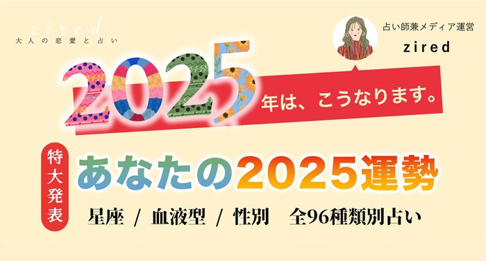占いメディアのzired(URL:https://zired.net 運営会社:株式会社リーチゼム)は2024年12月10日、『2025年運勢占い「あなたの2025年はこうなります」』を無料公開しました。