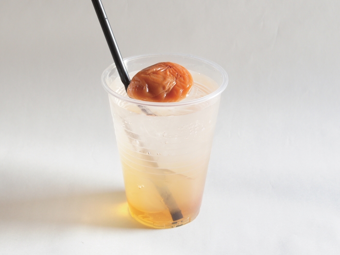 茨城県産梅を三温糖で漬け込んだ梅シロップを使用したソーダに、デザート感覚の「スイート梅」を丸ごと一粒のせた一品。
