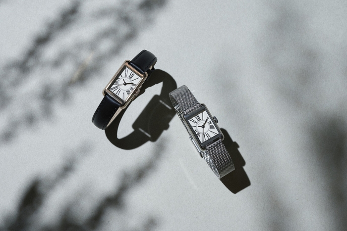 カラーバリエーションは、シルバーステンレスケース× メッシュバンドモデル(税込¥20,900)、ローズゴールドケース× ブラックレザーベルトモデル(税込¥20,900)の2種類を展開。