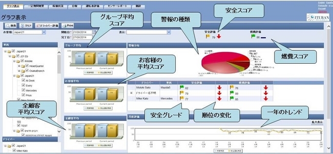 これまでの車両管理システムでもGPSや3軸のGセンサーの情報を利用し、急加速、急ブレーキなどの運転状況を「見える化」し、安全・燃費に係る数値を出しているものはありました。 それらに加えモービルアイの各種警報の発報回数や車間秒数の計測とも連携することで、より運転状況を正しく「見える化」できるのが、イトランのフリート管理システムの特徴で、「次世代」の安全運転管理・車両管理システムとして、交通事故の削減に大きな効果を発揮いたします。
