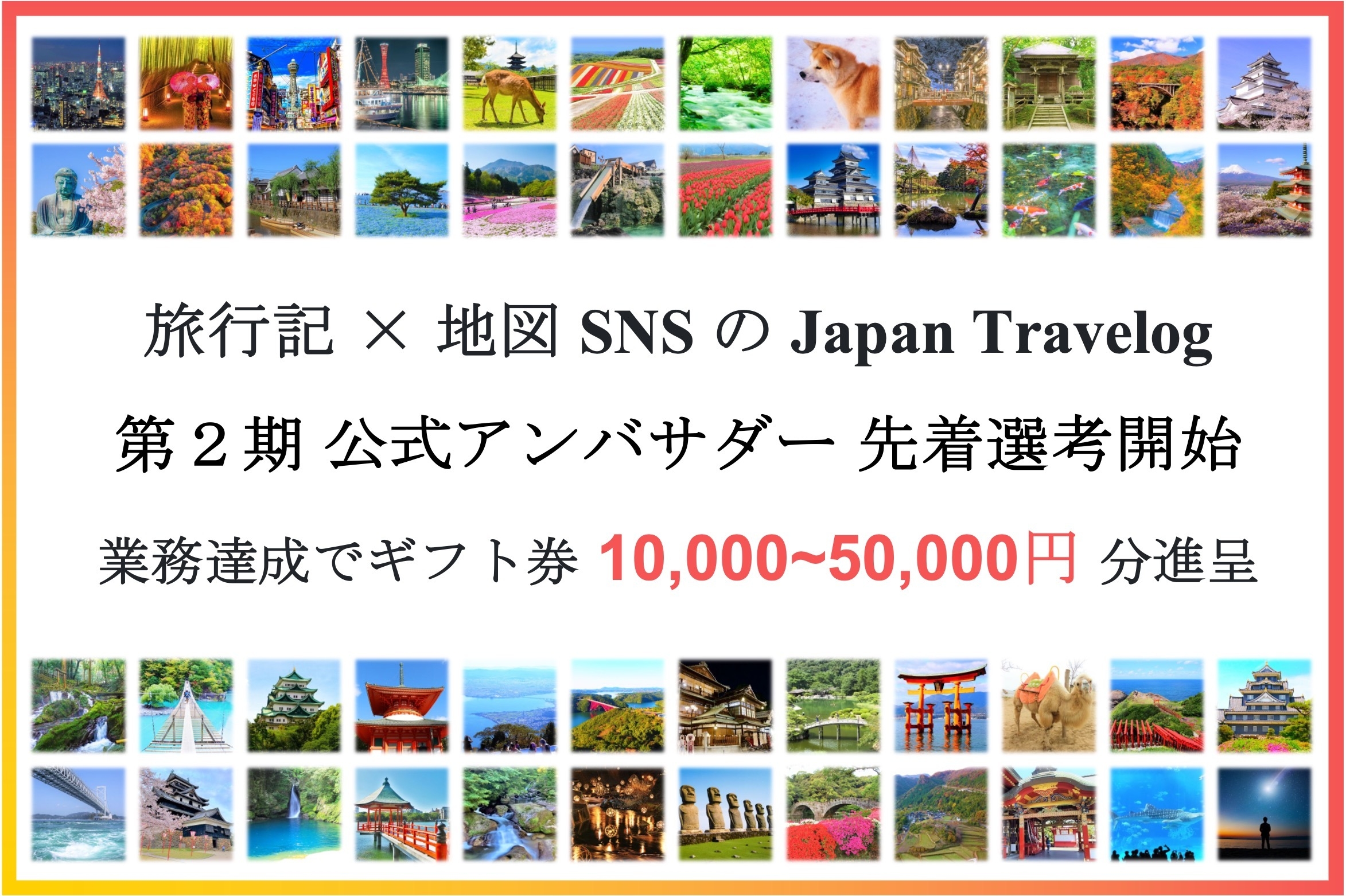 ~旅好き必見!日本の魅力を発信する仲間を広げてギフト券最大50,000円分進呈!~