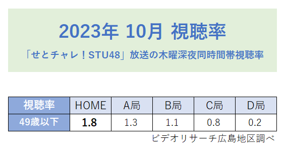 【せとチャレ!STU48】2023年10月・月間視聴率 49歳以下1位