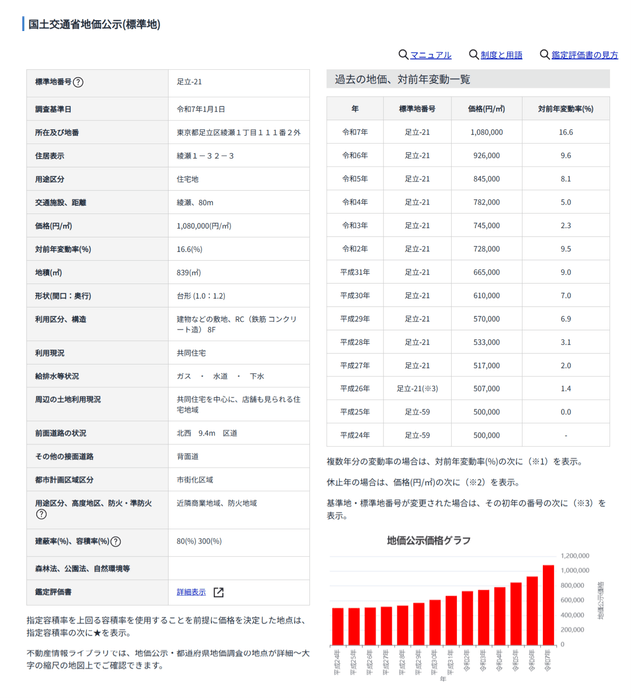 その中で、東京23区内の足立区綾瀬(標準地「足立-21」)では、上昇率が16.6%でした。