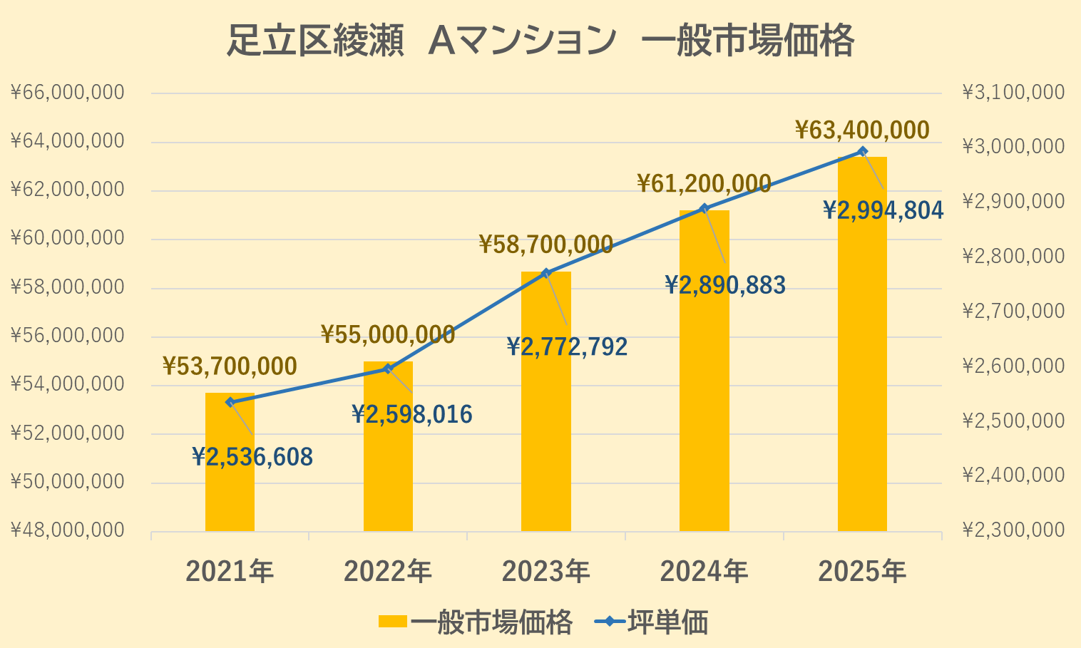 3. 足立区綾瀬の地価動向をマンション価格で見てみると・・・