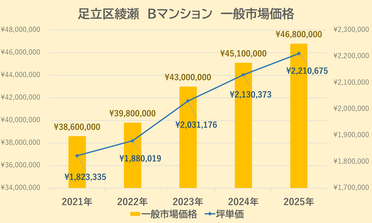 今回は東京都足立区綾瀬に焦点を当てまして、「マンション一般市場価格」を見てきました。