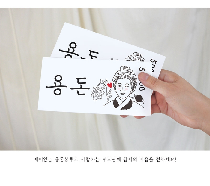 韓国では、名節(旧正月、秋夕、両親の日)に両親や親戚にお小遣いを渡す時や、友達や家族の誕生日にお小遣いや商品券を入れてプレゼントする際に使われています。