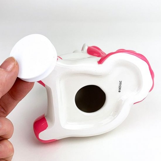 後頭部に貯金箱用の穴が開いています。前からは穴が見えないのでインテリアの置物として飾れる一石二鳥☆朝起きたらフラッフィー、帰ってきたらフラッフィーのフラッフィーライフが楽しめます。