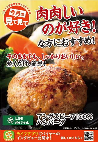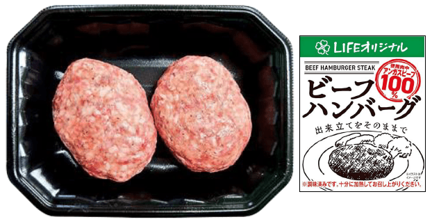 “おいしい” “ワクワク” “ハッピー” をお届けするライフコーポレーションは、多忙な方・簡単に作りたい方のための時短調理食品「LIFEオリジナル アンガスビーフ100%ハンバーグ」を、4月1日に新発売いたしました。