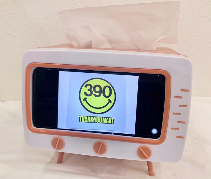 スマホが差し込めちゃうテレビ型ティッシュボックス。