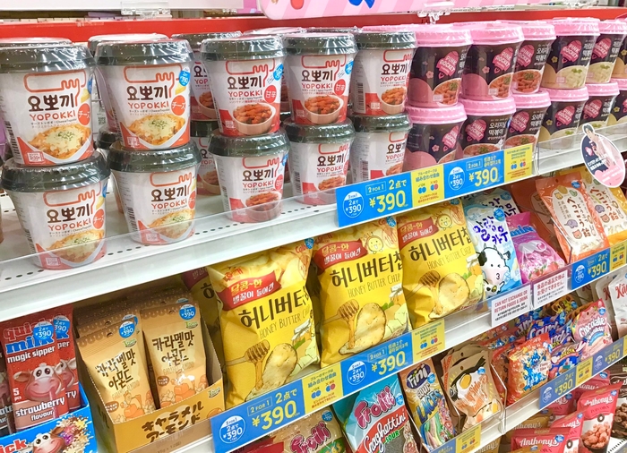 レアな輸入菓子が魅力のお菓子コーナー!見た目もお味も100点です。話題の韓国お菓子やヨッポギも!