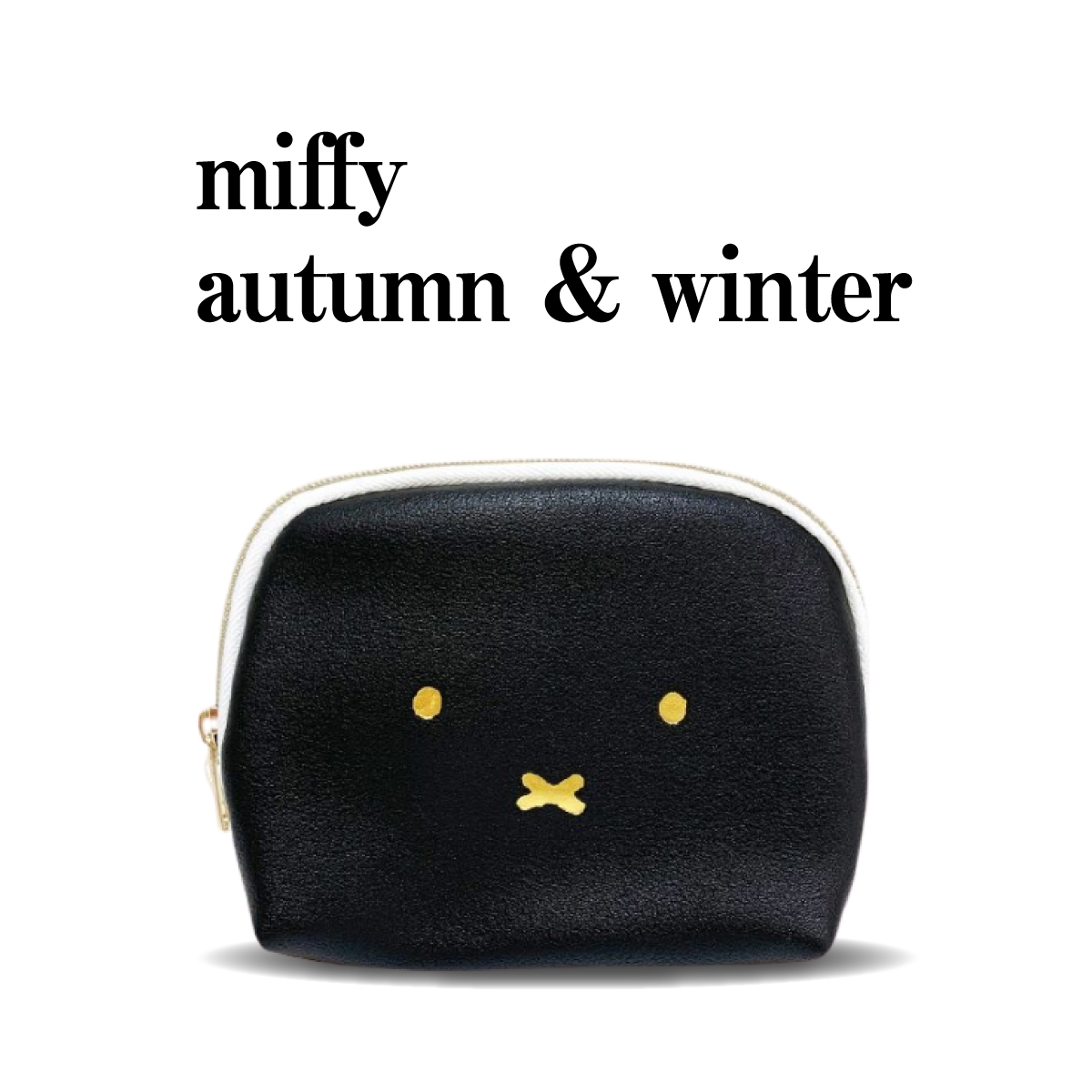 おなじみのミッフィーのお顔シリーズに、シックなモノトーンのポーチやパスケースが加わりました♪