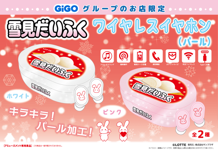 ・LOTTE 雪見だいふく ワイヤレスイヤホン(パール)ホワイト/ピンク~GiGO限定~(全2種)