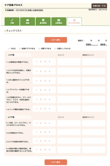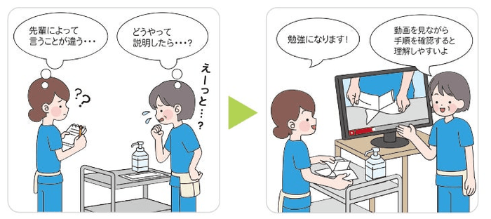 ・看護手順書と連動した最新の技術映像を看護の 専門家チームが制作