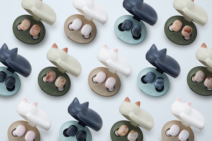 イヤホンは多色成形によるマーブル模様を採用。世界中を探しても同じ猫が一匹もいないように、イヤホンにも個性豊かな模様を施しました。