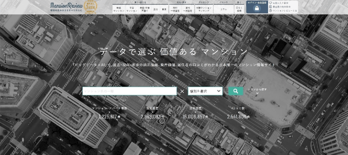 当社が2010年より運営しているマンション情報サイト。全国約14万7千棟の物件の概要のほか、『クチコミ』・『適正相場』・『資産価値』もわかる情報サイトで、年間の訪問ユーザー数は約1,500万人(2021年)。登録会員数は2021年11月に50万人に達し、2022年7月には57万人を突破いたしました。