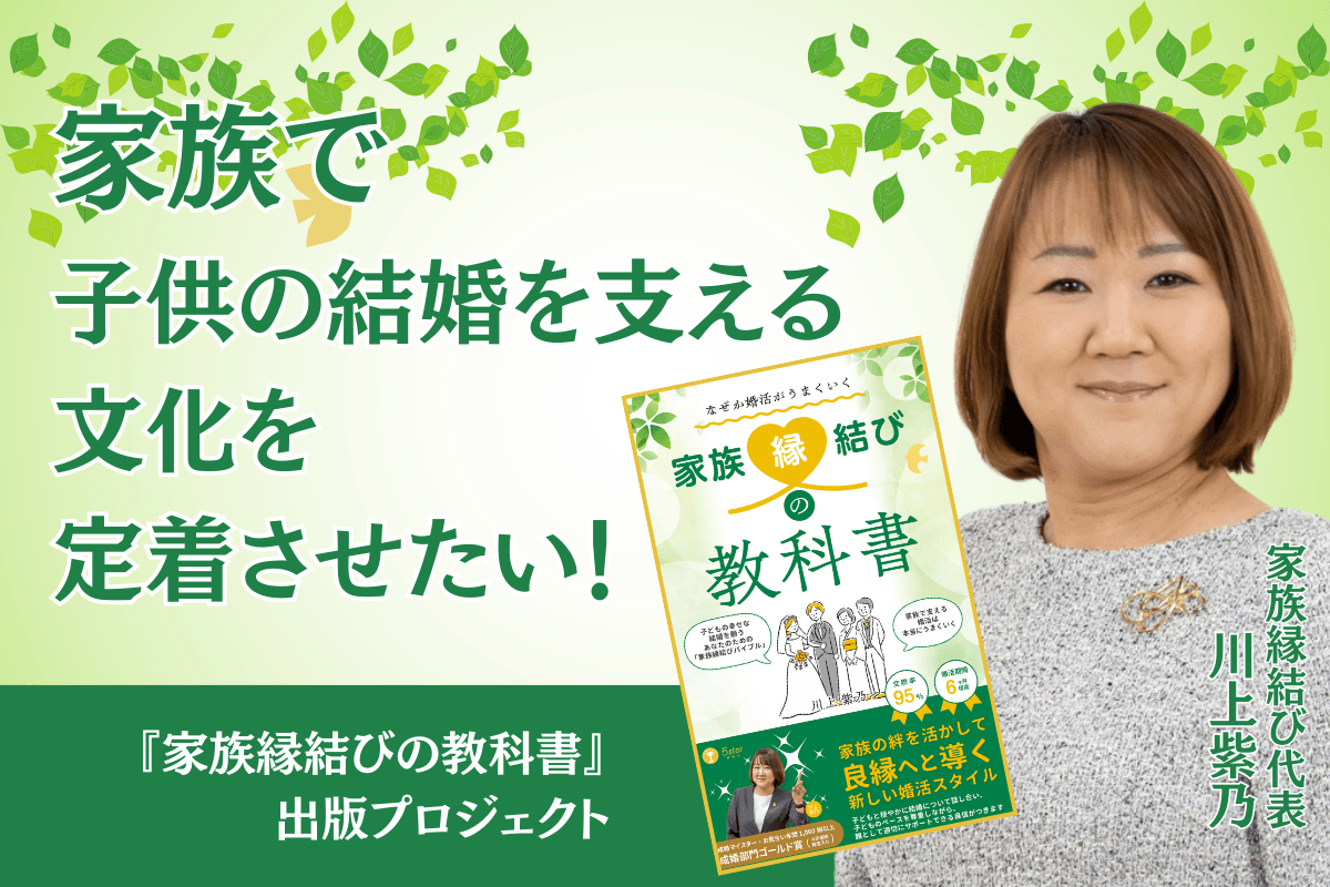 成婚優秀賞殿堂入り仲人・川上 紫乃が提唱する「家族で支える婚活」初の書籍化! 『家族縁結びの教科書』出版記念クラウドファンディング開始のお知らせ