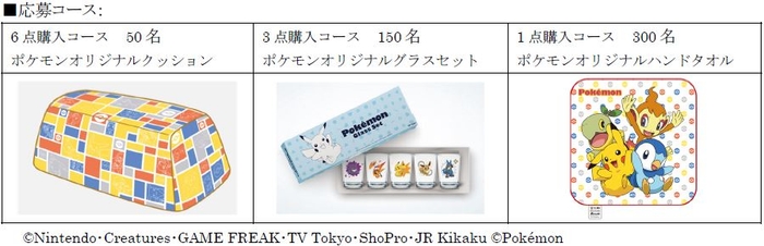 ・3点購入コース「ポケモンオリジナルグラスセット」 当選本数 :150名様