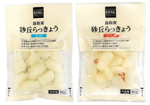 鳥取砂丘で栽培されたこだわりのらっきょうを使用した良質ならっきょう漬けを、甘口とピリ辛の2種類ご用意いたしました。定番のカレーのお供にはもちろん、お酒のおつまみとしてもおすすめです。