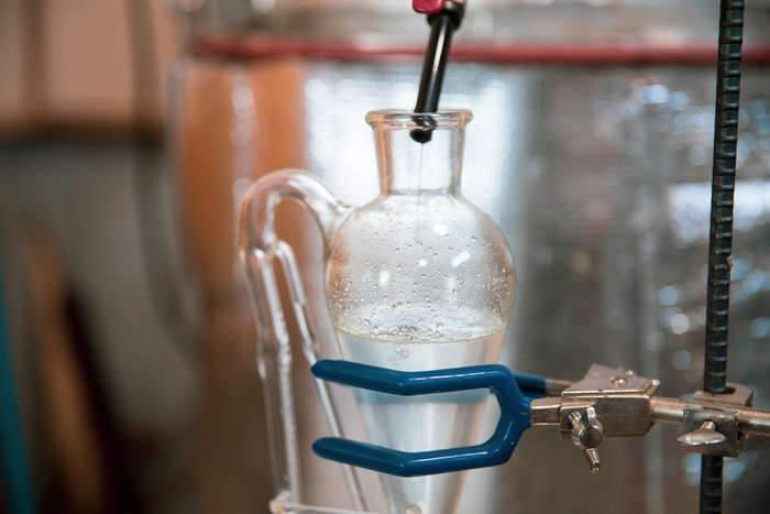 その一つとして、宿泊代金の2%を散居村保全のための寄付金とし、支援先の一つである、ボランティアでカイニョの整備に取り組む「カイニョお手入れ支援隊」の活動にも参加しています。そこで、かつては煮炊きや建材に活用されていたカイニョの木や落ち葉が現在は行き場を失っていることを知り、新たな活用方法の一つとして、精油を抽出することになりました。