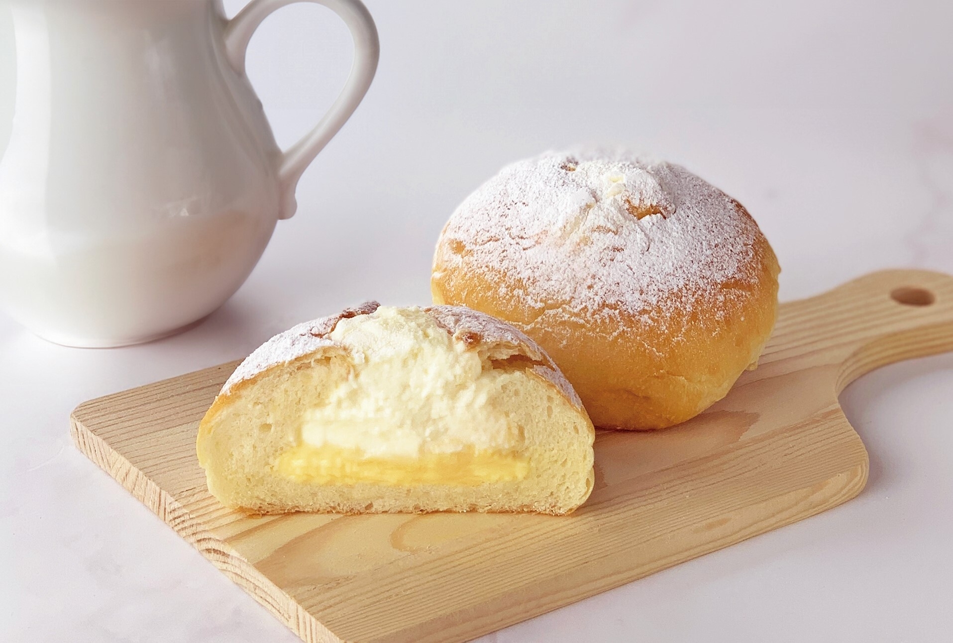 日本一の生乳生産量を誇る北海道別海町の牛乳を使用したパン生地で、北海道産生クリームと濃厚カスタードをたっぷり包んだパン。