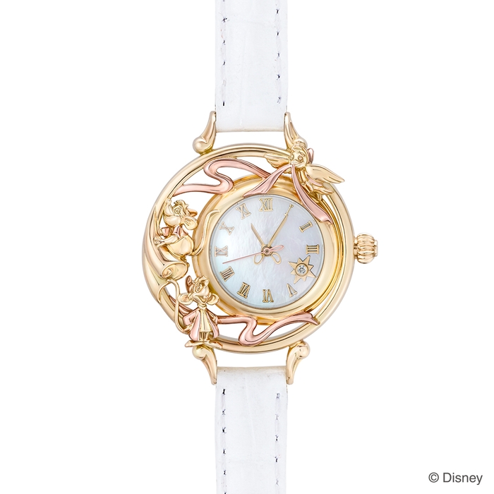 ディズニーアニメーション映画『シンデレラ』をモチーフに。時計パーツの周りに「ジャック」と「ガス」や小鳥をデザインし、作品のワンシーンを表現しています。