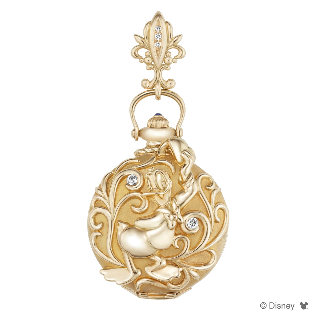 「ドナルドダック」をモチーフにデザイン。懐中時計をペンダントトップに。