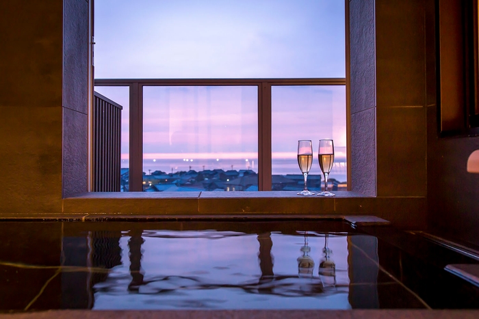 刻々と移り行く夕景に見とれながら、互いに思わず出た言葉が重なり合う、かけがえのない語らいのひととき。同じ景色には二度と出会えない、今この瞬間この刻を「碧 -AO-」でご体感ください。