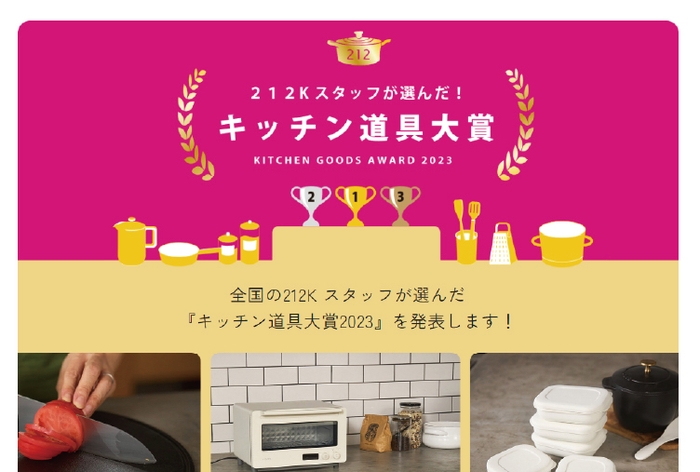 今年で2年目の開催となる212キッチンストアが選ぶ「キッチン道具大賞」は、全国80店舗のスタッフの投票で決定した、今年の一推しのキッチン道具をランキングで発表いたします。