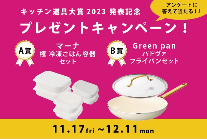 キッチン道具大賞2023の発表を記念して、 アンケートに答えて当たる!プレゼントキャンペーンも実施!
