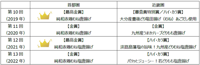 ▼ライフコーポレーションのからあげグランプリ過去受賞歴