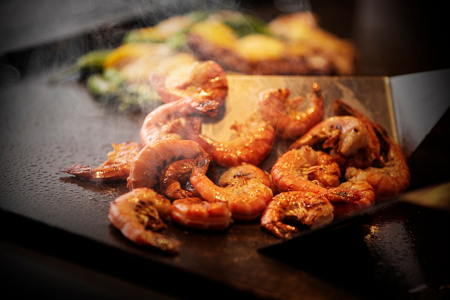 ハワイアン料理の代表的メニュー“ガーリックシュリンプ”は、レストラン店内にあるライブコーナーで出来たてをご提供いたします。そのまま食べても、フルーティーなパイナップルBBQソース、ピリ辛がくせになるチャンキーサルサ、ライムの香りが爽やかなシラントロソースで味変するのもおすすめ!食欲をそそるニンニクの香りに手が止まらなくなる一押しメニューです。