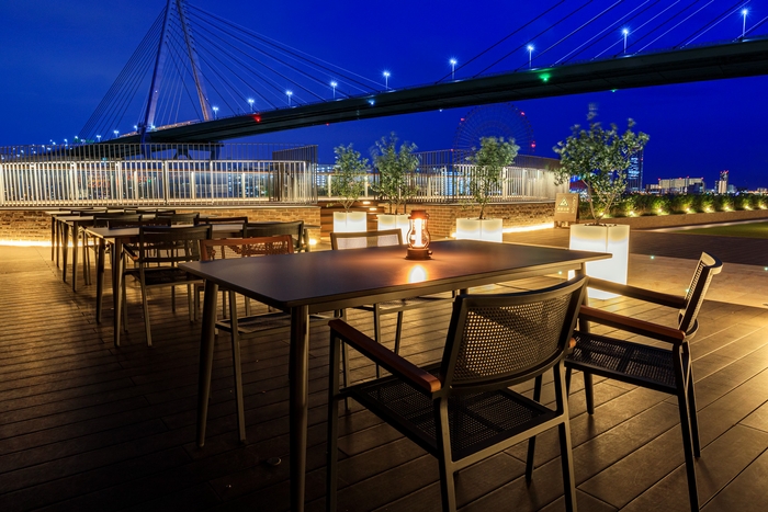 大阪ベイエリアを一望できる、開放感たっぷりのテラス席!