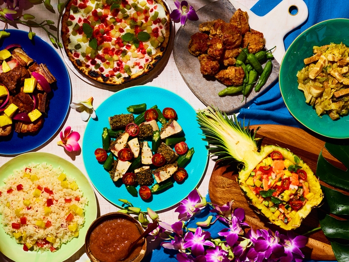 ハワイアンププをイメージした前菜や、お肉やシーフードたっぷりのホットメニュー