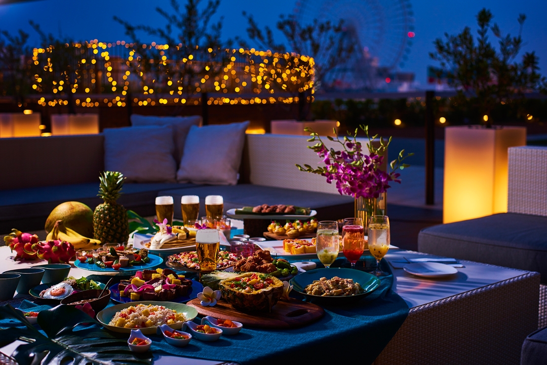 さあ、夏本番! ベイエリアの夜景を一望できる南国ムードたっぷりのビアテラスでトロピカルなディナータイムを。