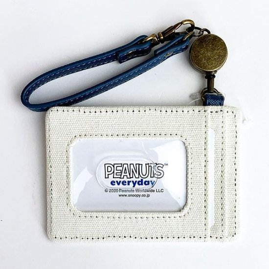 こちらは、シングルパスケースです。アンディとオラフが2人で旅をしています♪キャンバス地に、ネイビーのリール付きストラップの配色もシンプルベーシック。