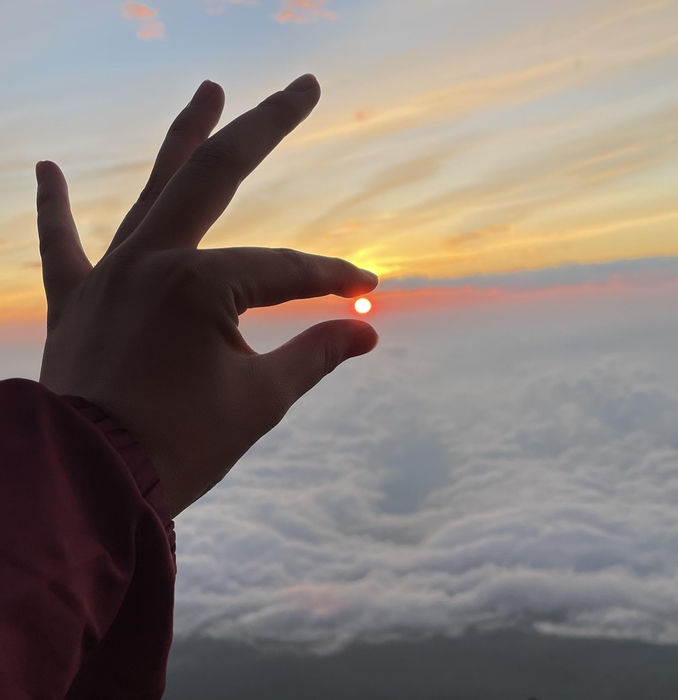 今年から1人用のテントを部で購入したので、コロナ禍でも泊まり登山ができるようになりました。夏には念願の富士山に登り、ご来光を見ました。あまりの絶景に感動して、涙がポロポロと……。