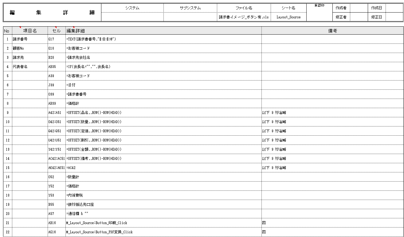 例えば、関数や式であれば、どこに式が設定されているか、どんな式があるか、を効率よく(20行あっても同様の内容なら1行に束ねる等)表現できます。