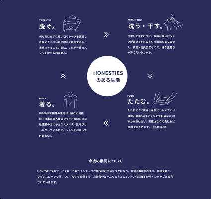 我々HONESTIES(オネスティーズ)株式会社は、本当のユニバーサルデザインな服を目指し『裏表』や『前後』をなくした衣類を開発している大阪・泉州発のD2Cアパレルブランドです。これまで肌着や靴下を開発し、過去4回のMakuakeプロジェクトでは757名の方々にご支援をいただきました。本当にありがとうございます!