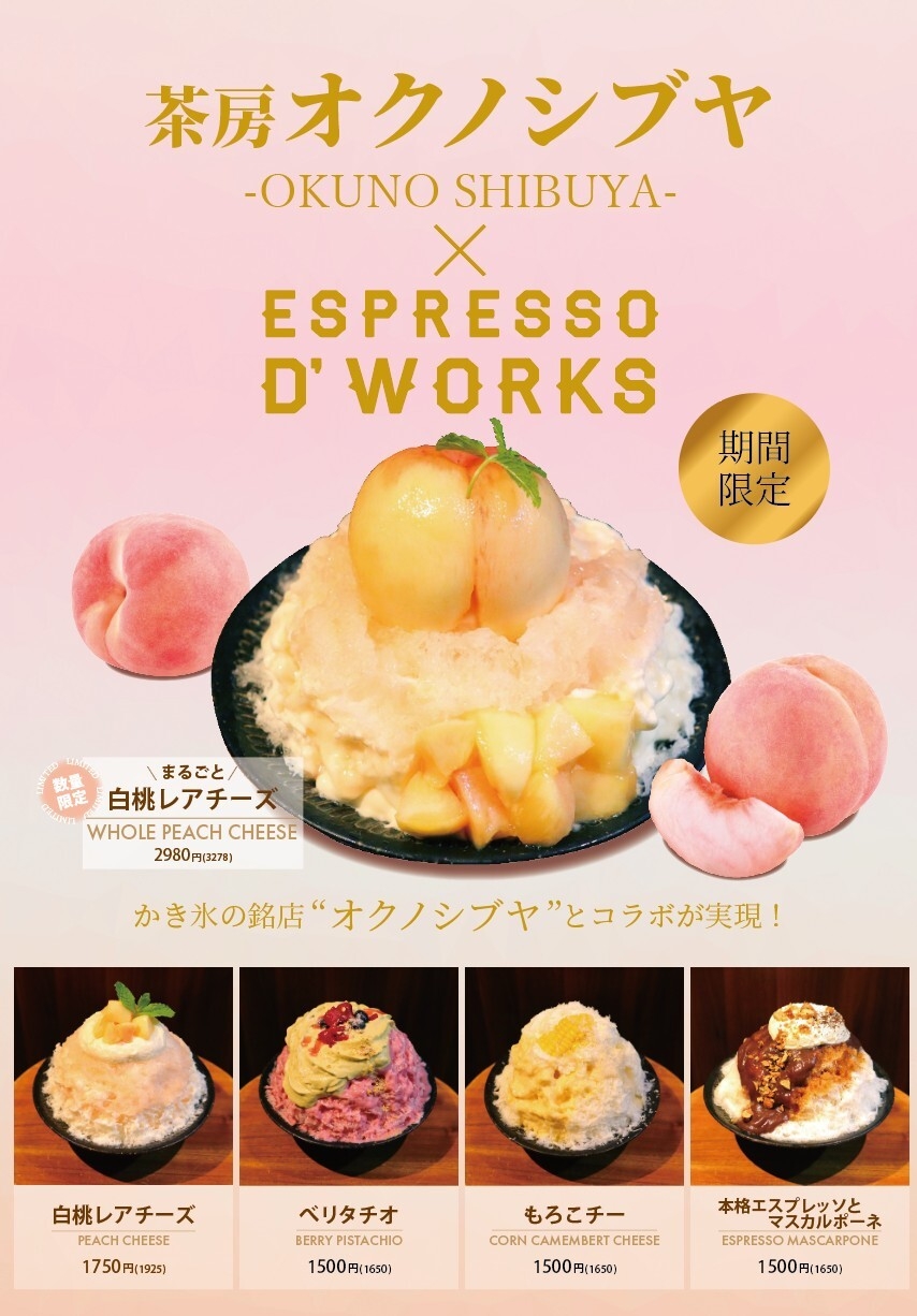 ※「まるごと白桃レアチーズ」は、Espresso D Works、渋谷DRAエイトマン、flour+water 長崎店でのみ提供している商品です