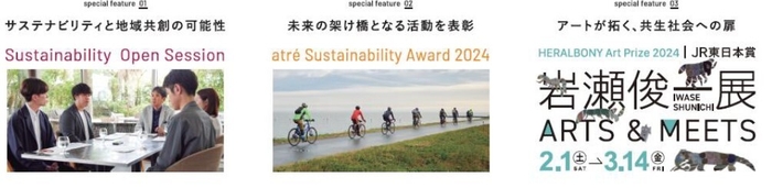 持続可能な社会の実現に貢献する優れた活動を全社から募集し、表彰する「アトレ サステナビリティアワード」を創設。初年度は50件のエントリーの中から、グランプリ(社長賞)にプレイアトレ土浦の『いばらきK1ライド』が選ばれるなど、地域共創から環境配慮、well-beingまで、現場の多様なアクションを特集しています。