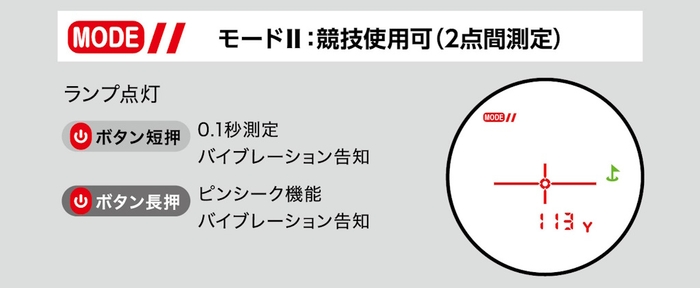 また、競技使用可能な「モードI」、「モードII」のときには、緑のランプが点灯します。