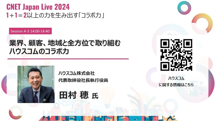 リアル拠点と不動産DXのシナジーでライフスタイルデザインを追求するハウスコム株式会社〔所在地:東京都港区、スタンダード市場 コード番号:3275、以下ハウスコムグループ〕の代表取締役社長執行役員 田村 穂は、2024年2月下旬に開催された朝日インタラクティブ株式会社主催のイベント「CNET Japan Live 2024」で、業界、顧客、地域と全方位で取り組むハウスコムの「コラボ力」をテーマに講演しました。その概要について、ご案内します。