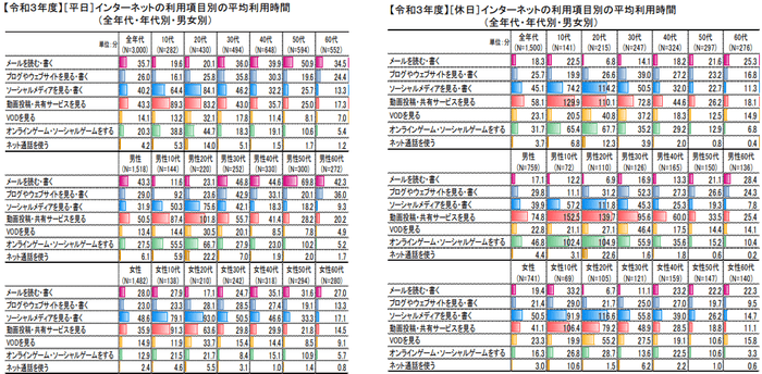 出典:総務省 令和3年度 情報通信メディアの利用時間と情報行動に関する調査報告書
