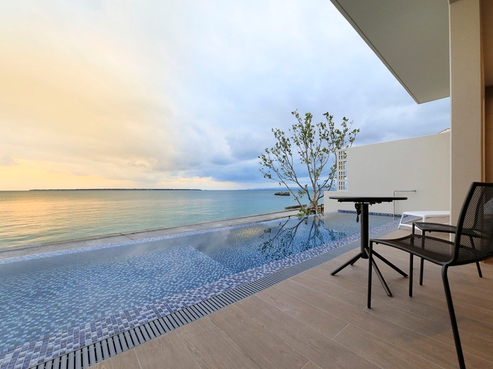 全98室中、1階の28室がプライベートプール付き。 水平線に溶け込むようなインフィニティプールの開放感を自室で味わえます。