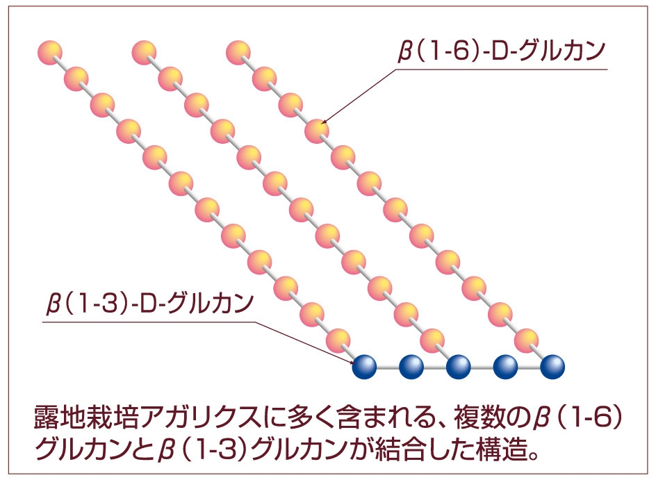 β-グルカンは、キノコ、カビ、酵母など真菌類の細胞壁に含まれる成分で、β-1,3-グルカンとβ-1,6-グルカンに大別されます。