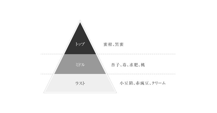 あんみつの風味をトップ、ミドル、ラストの時間の経過とともに味わう香りです。
