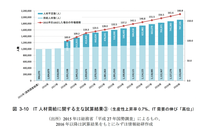 経産省の「IT 人材需給に関する調査(https://www.meti.go.jp/policy/it_policy/jinzai/houkokusyo.pdf)」によると、数年後の2030年には約80万人のIT人材が不足すると予測されています。また、最新の「世界デジタル競争力ランキング2023(https://www.imd.org/centers/wcc/world-competitiveness-center/rankings/world-digital-competitiveness-ranking/)」では、日本は32位と前年度の同調査から3つ順位を落とし、他の先進国と大きく差がついている状況です。